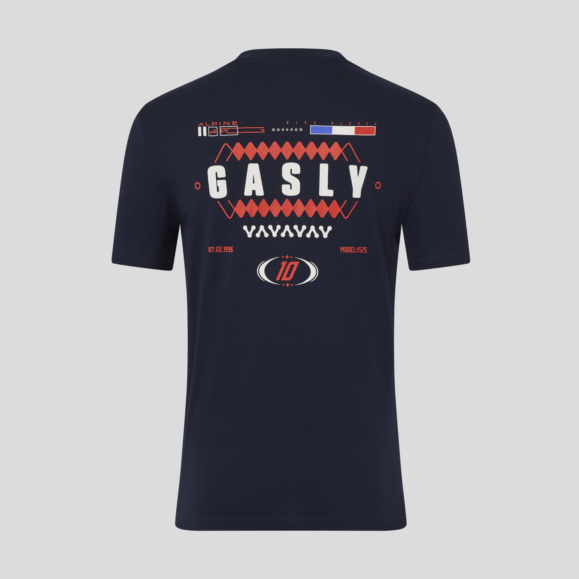 Show your support for Pierre Gasly with this official BWT Alpine F1 Team t-shirt in deep navy. Featuring a sleek Alpine logo on the front and vibrant red, white, and blue GASLY graphics on the back—complete with his race number 10—this tee is a striking addition to any Formula 1 fan’s wardrobe. it offers comfort and style whether you’re at the circuit or cheering from home. A must-have for dedicated Alpine F1 and Gasly fans.