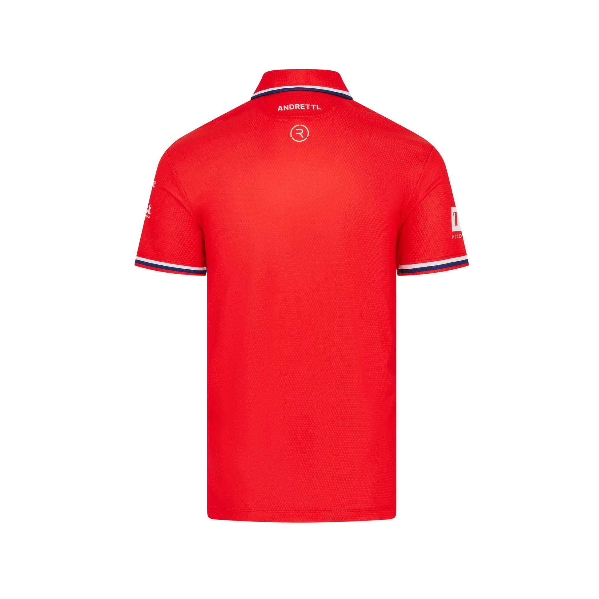 Stand out in signature Andretti Formula E red. This short sleeve polo delivers lightweight comfort with a clean, performance-led fit. Made from 100% recycled polyester and finished with precise team detailing for an iconic trackside look.