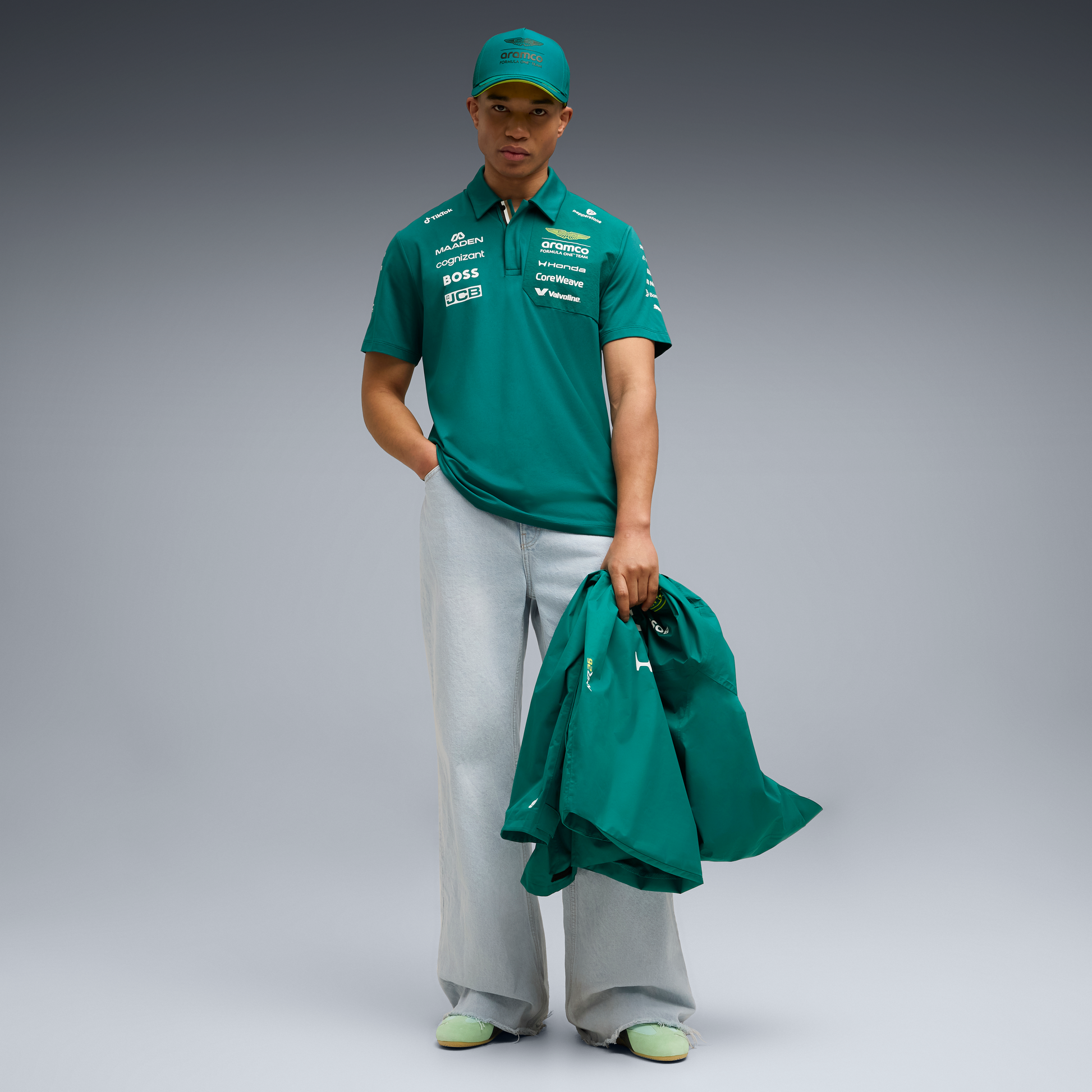 Support the 2026 season in style with the Aston Martin F1 Team 2026 Polo for men in Green Lux. Designed for comfort and a modern fit, this official team polo features a classic collar, breathable fabric, and Aston Martin Formula One Team branding, ideal for race days, casual wear, or motorsport-inspired everyday style.