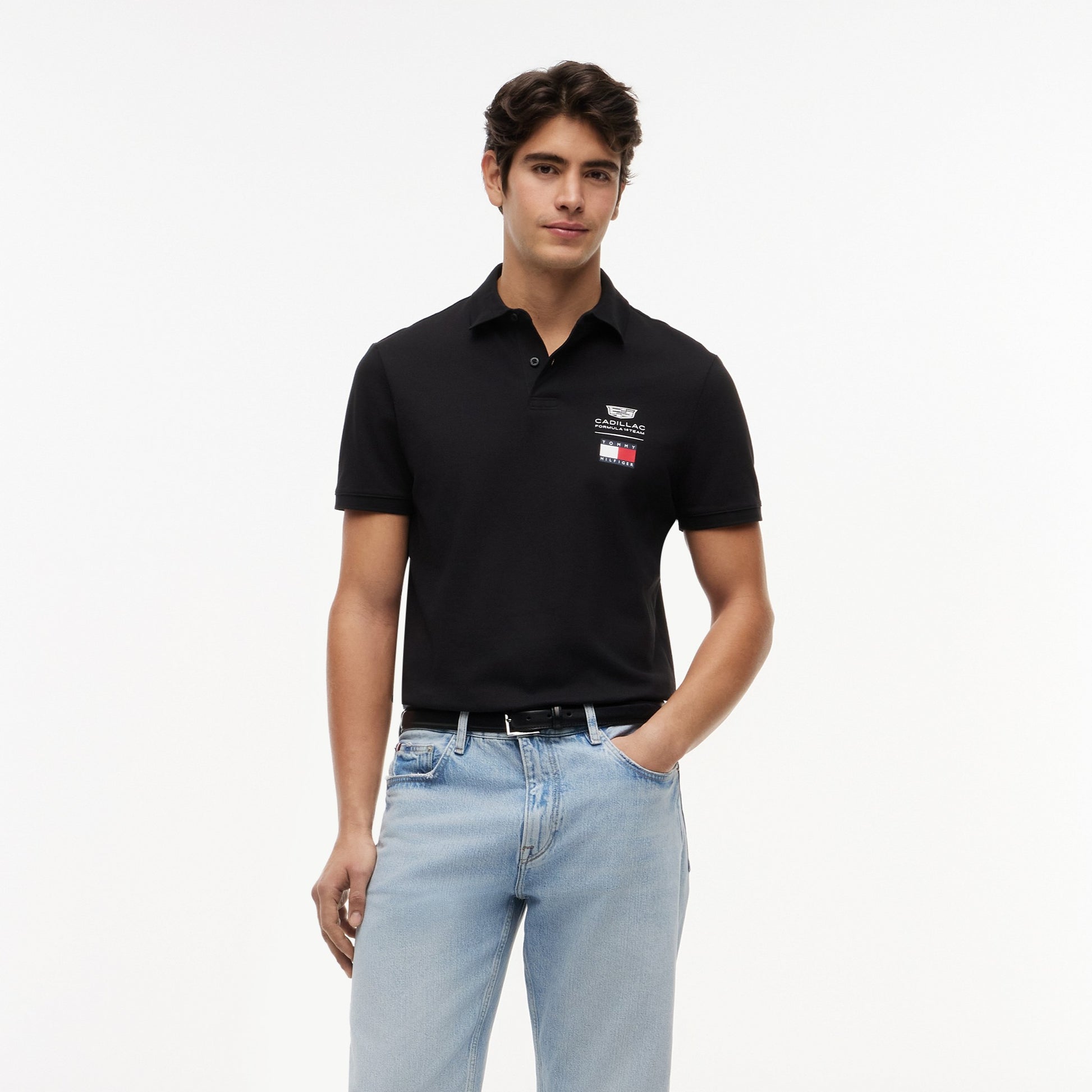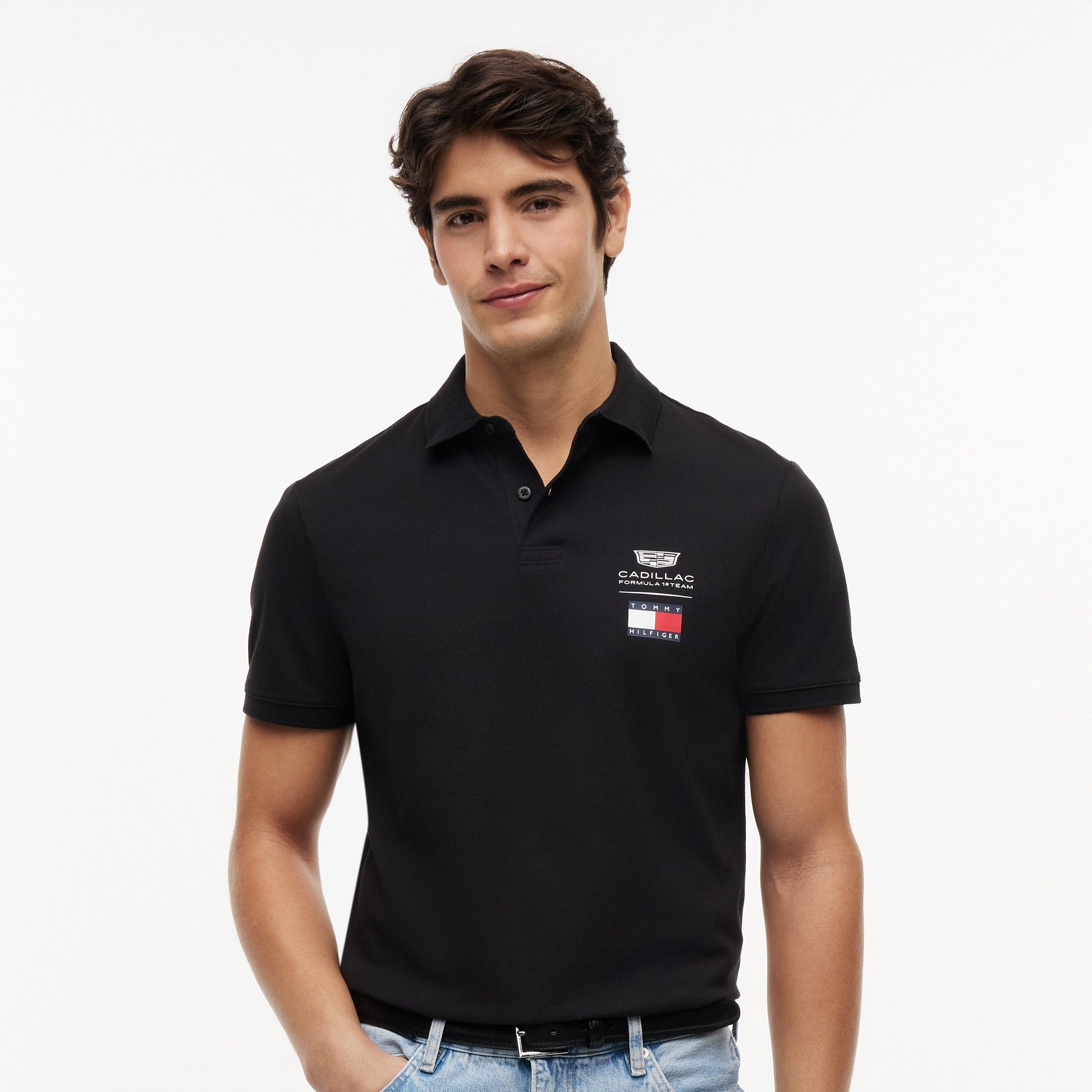 Combine American motorsport heritage with refined casual style in the Cadillac F1 x Tommy Hilfiger Logo Polo for Men in sleek black. This premium men’s polo blends classic design with bold Tommy Hilfiger x Cadillac Formula 1 Team branding for standout everyday appeal.
