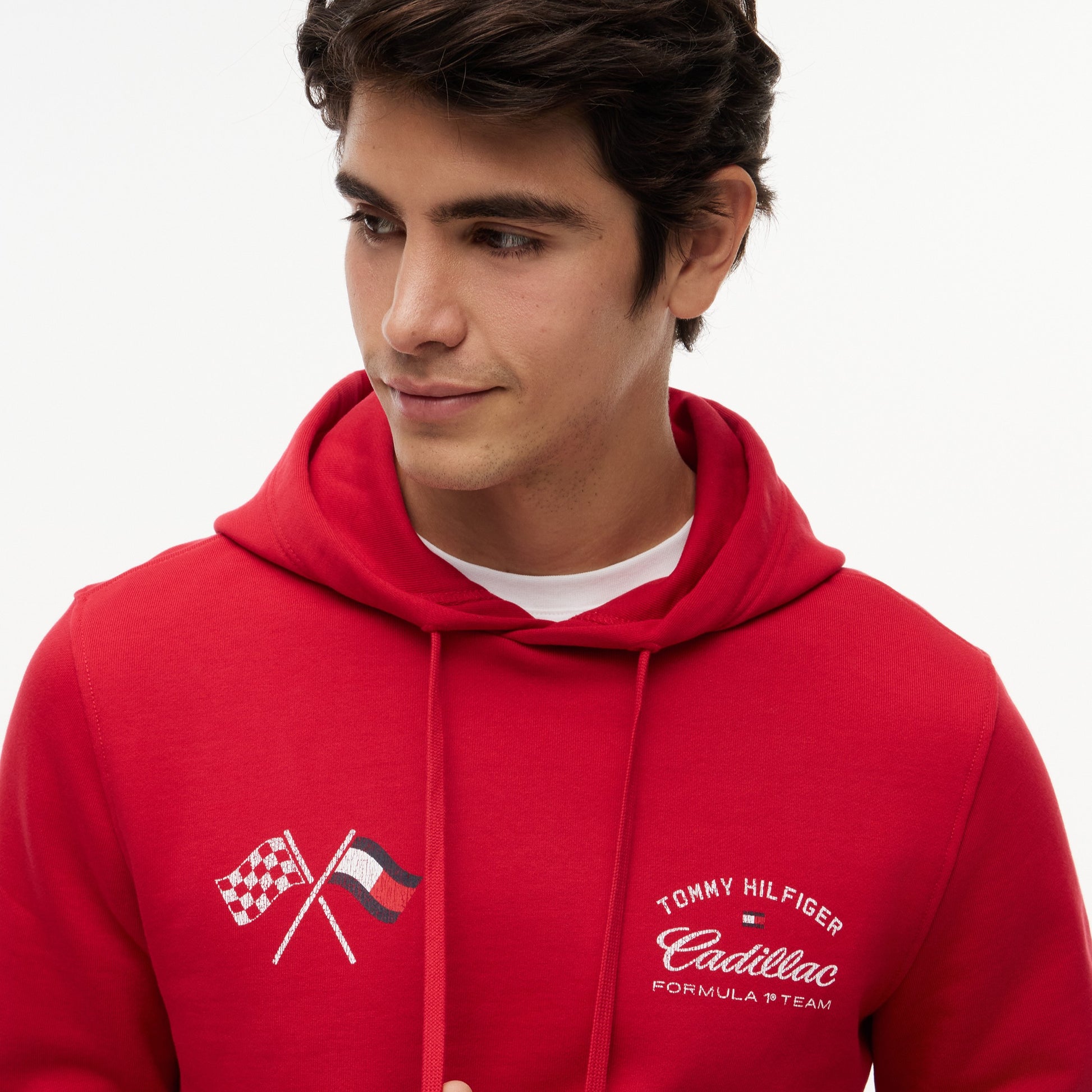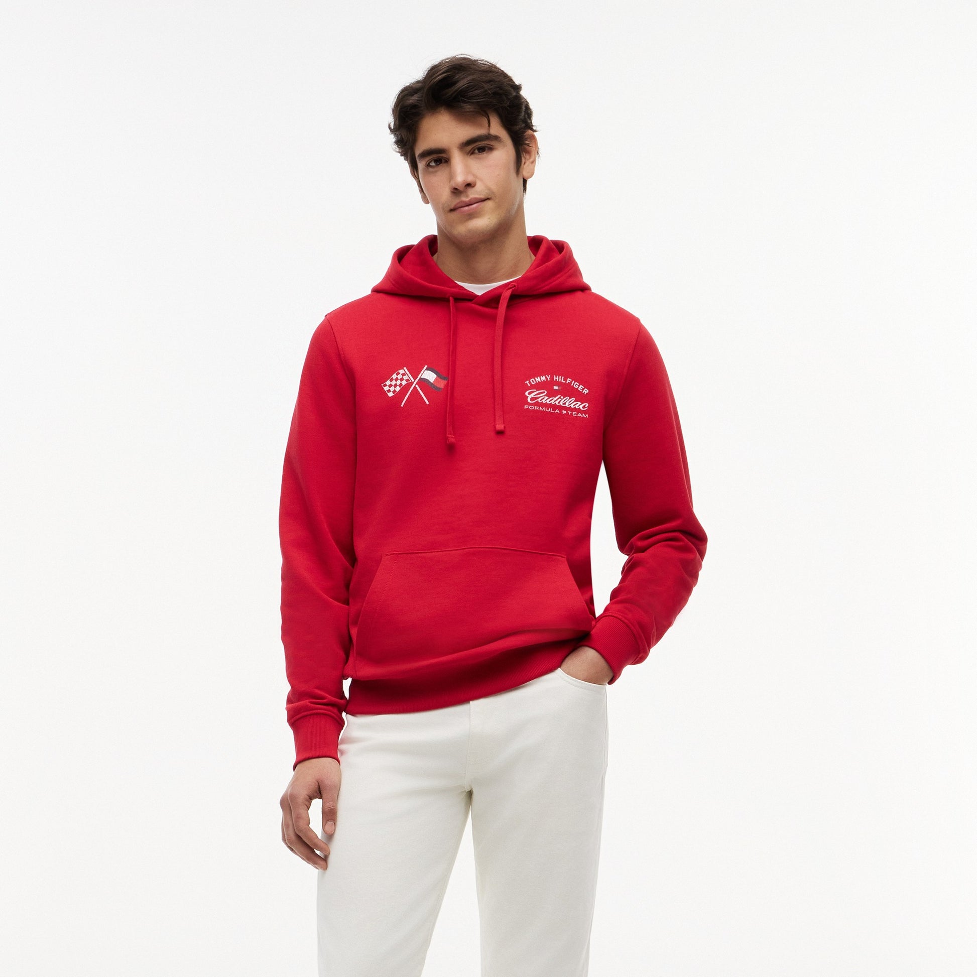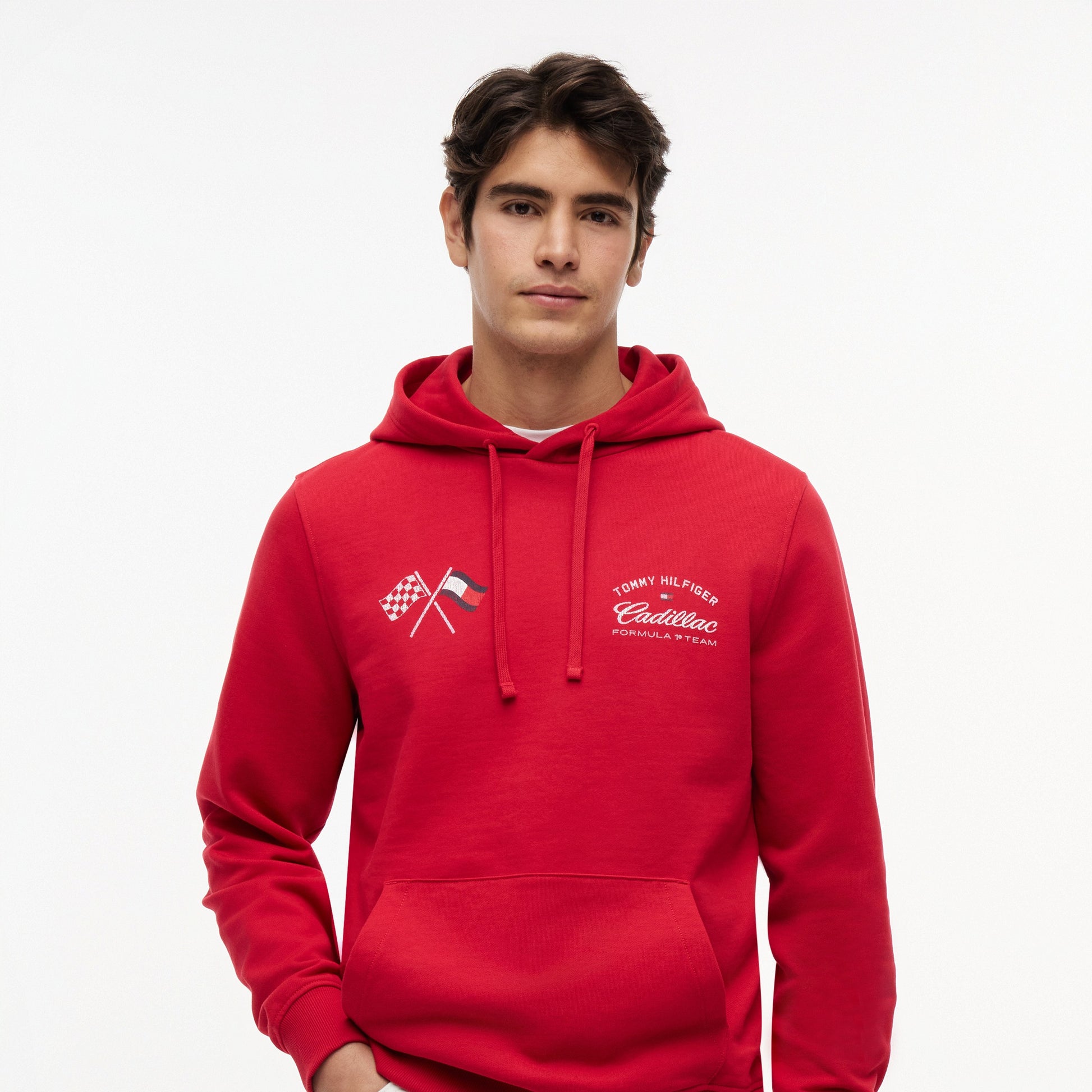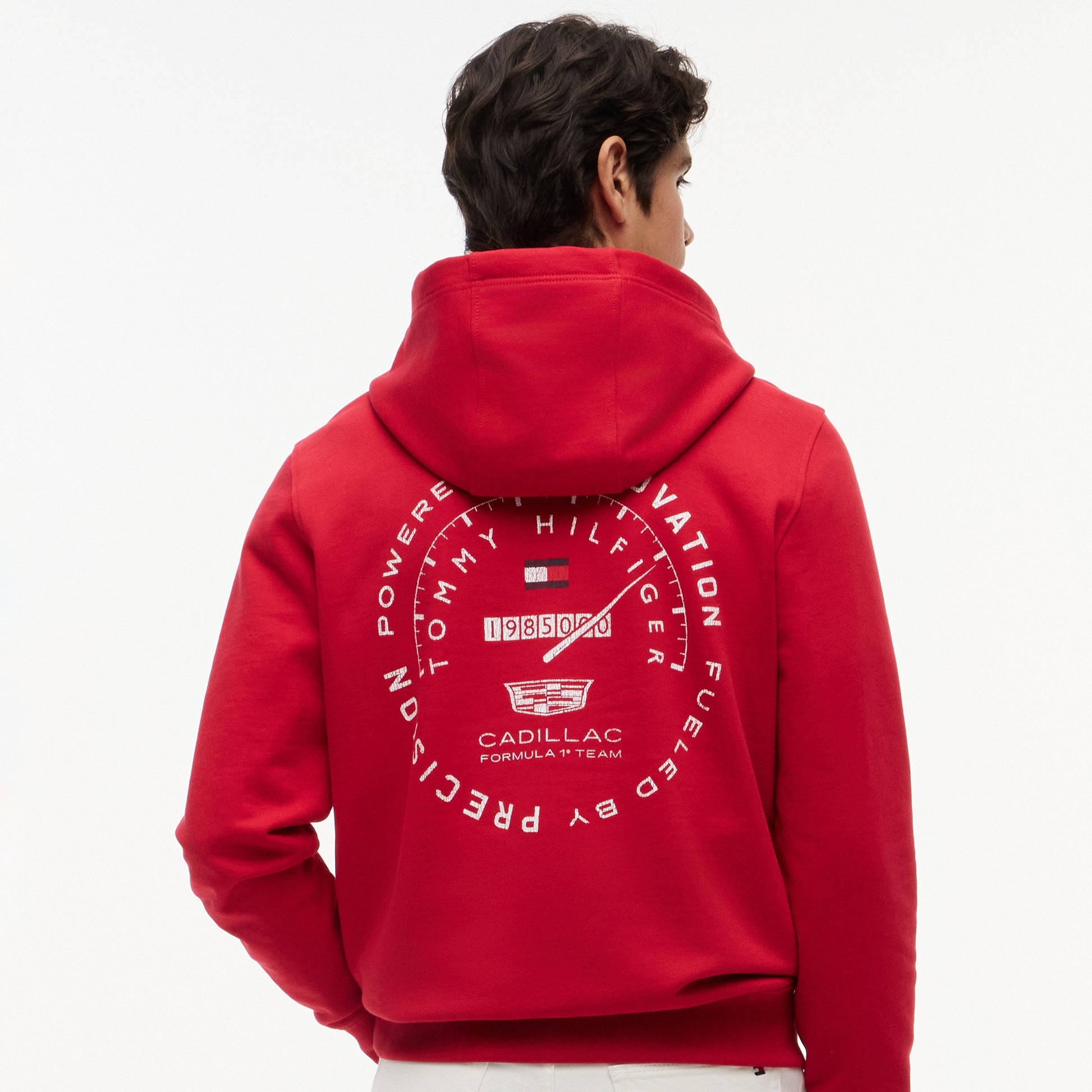 Capture the thrill of the race with the Cadillac F1 x Tommy Hilfiger Speedometer Hoodie for Men in vibrant red. This premium men’s hoodie blends American motorsport-inspired design with Tommy Hilfiger’s signature quality.
