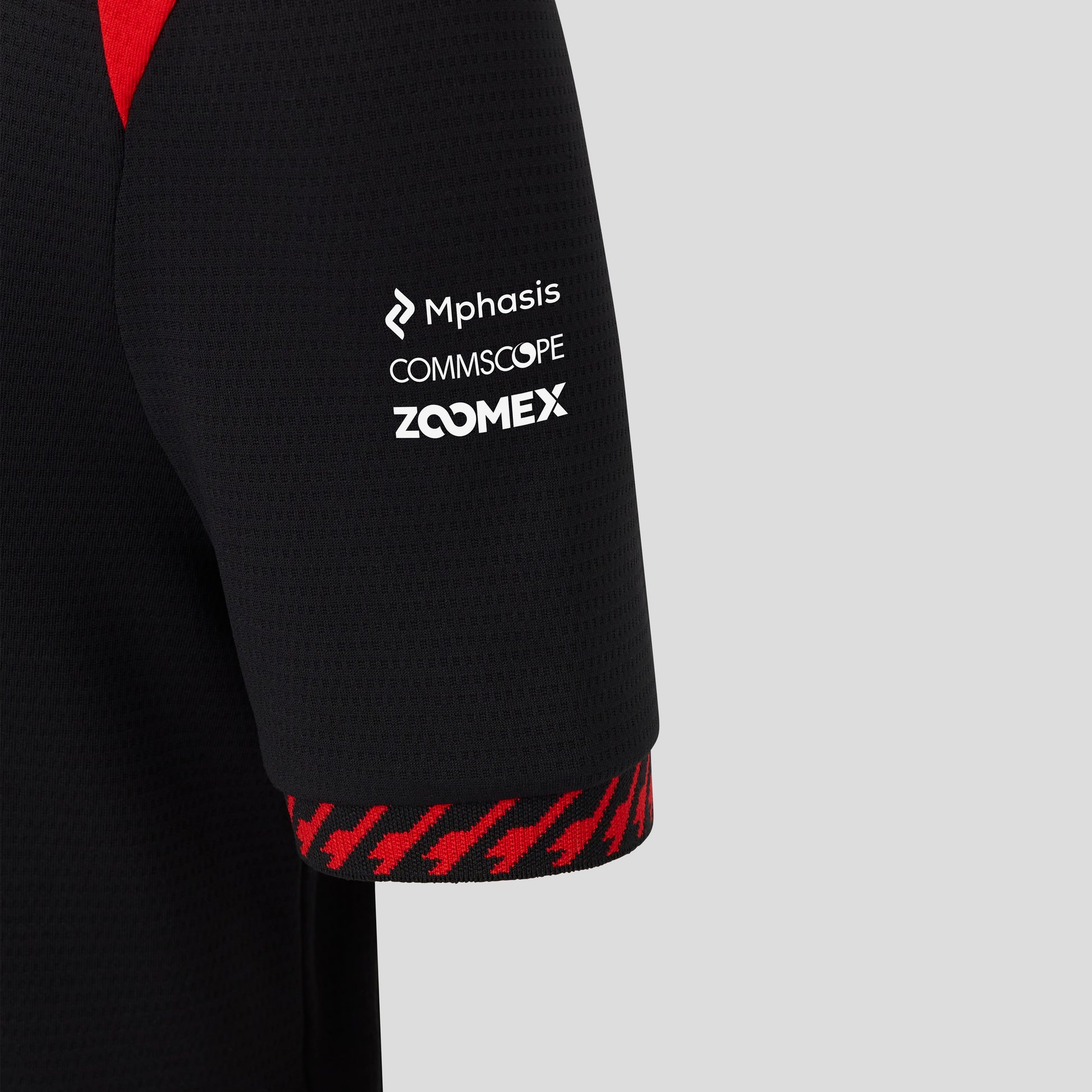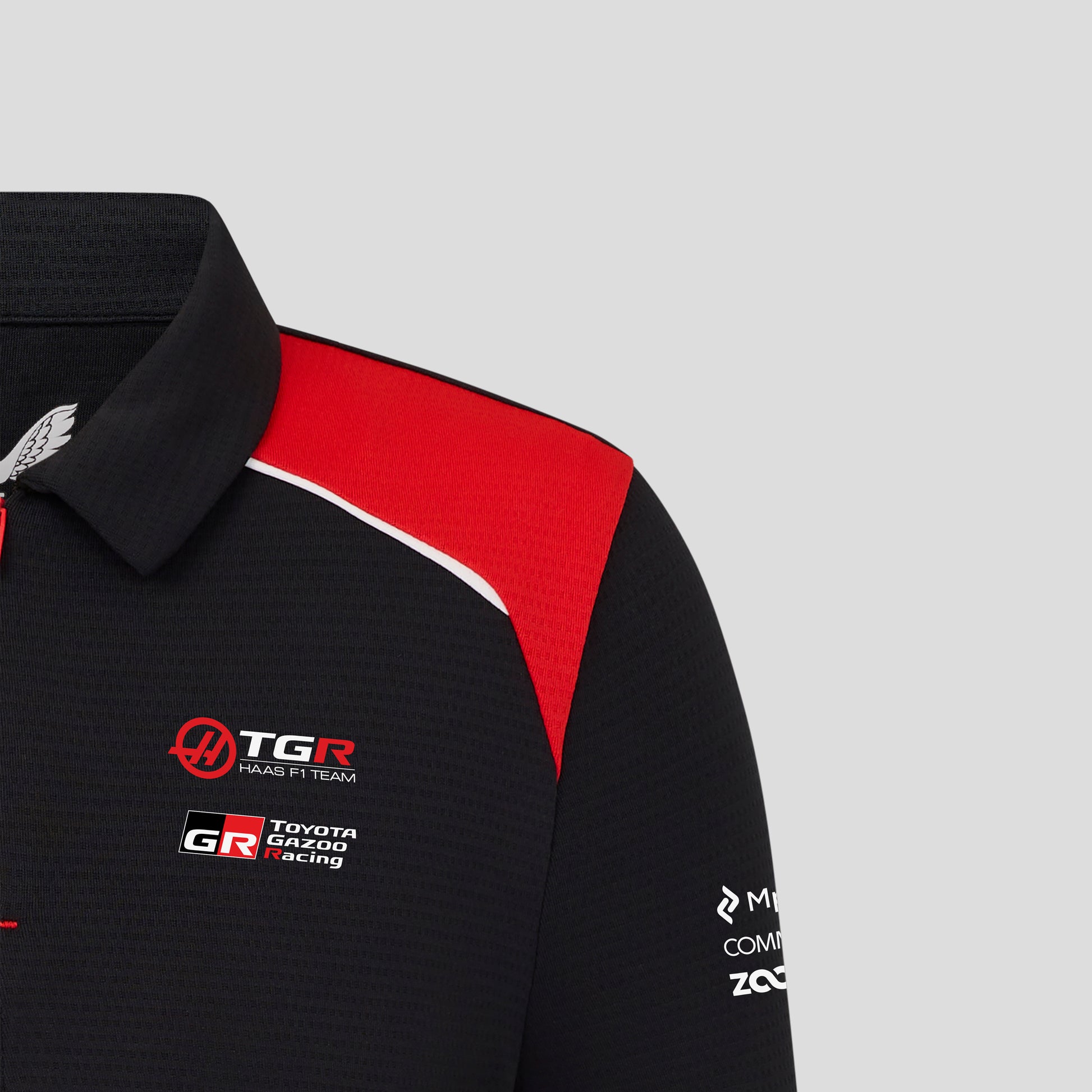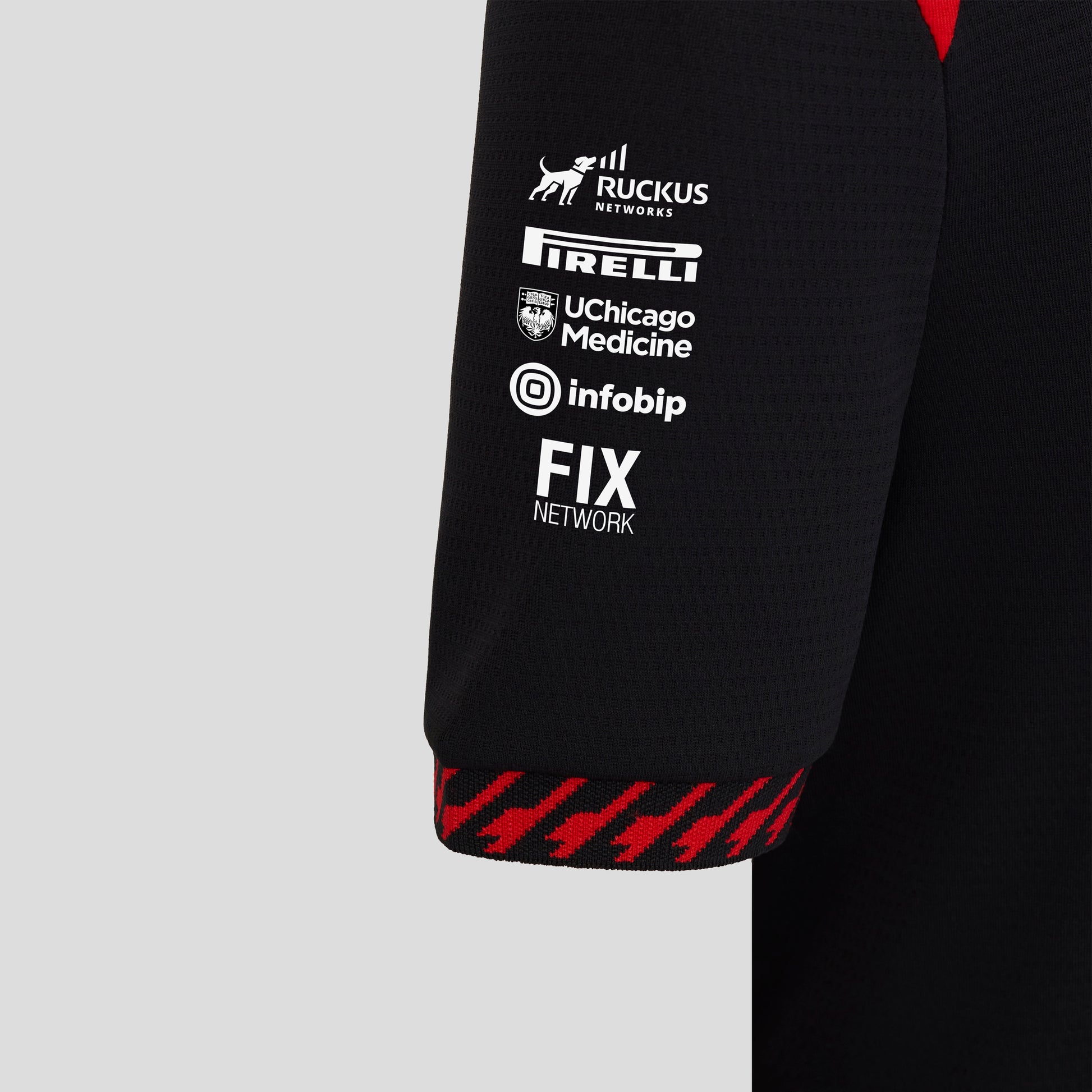 The Haas F1 F1 Team 2026 Short Sleeve Polo Kids - Caviar / Flame Scarlet combines bold Formula 1 style with all-day comfort for young fans.