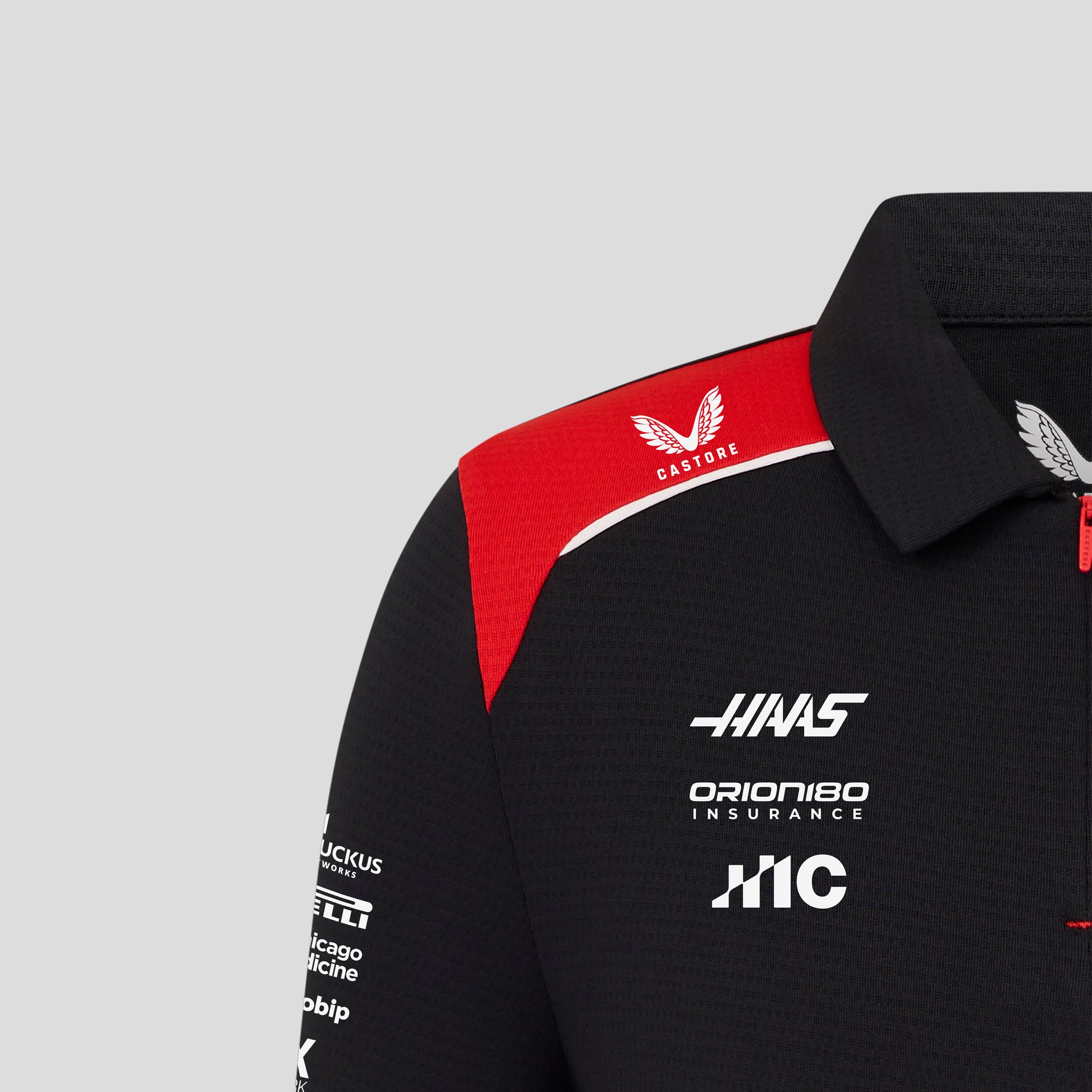 Haas F1 Team 2026 Short Sleeve Polo Kids - Caviar / Flame Scarlet
