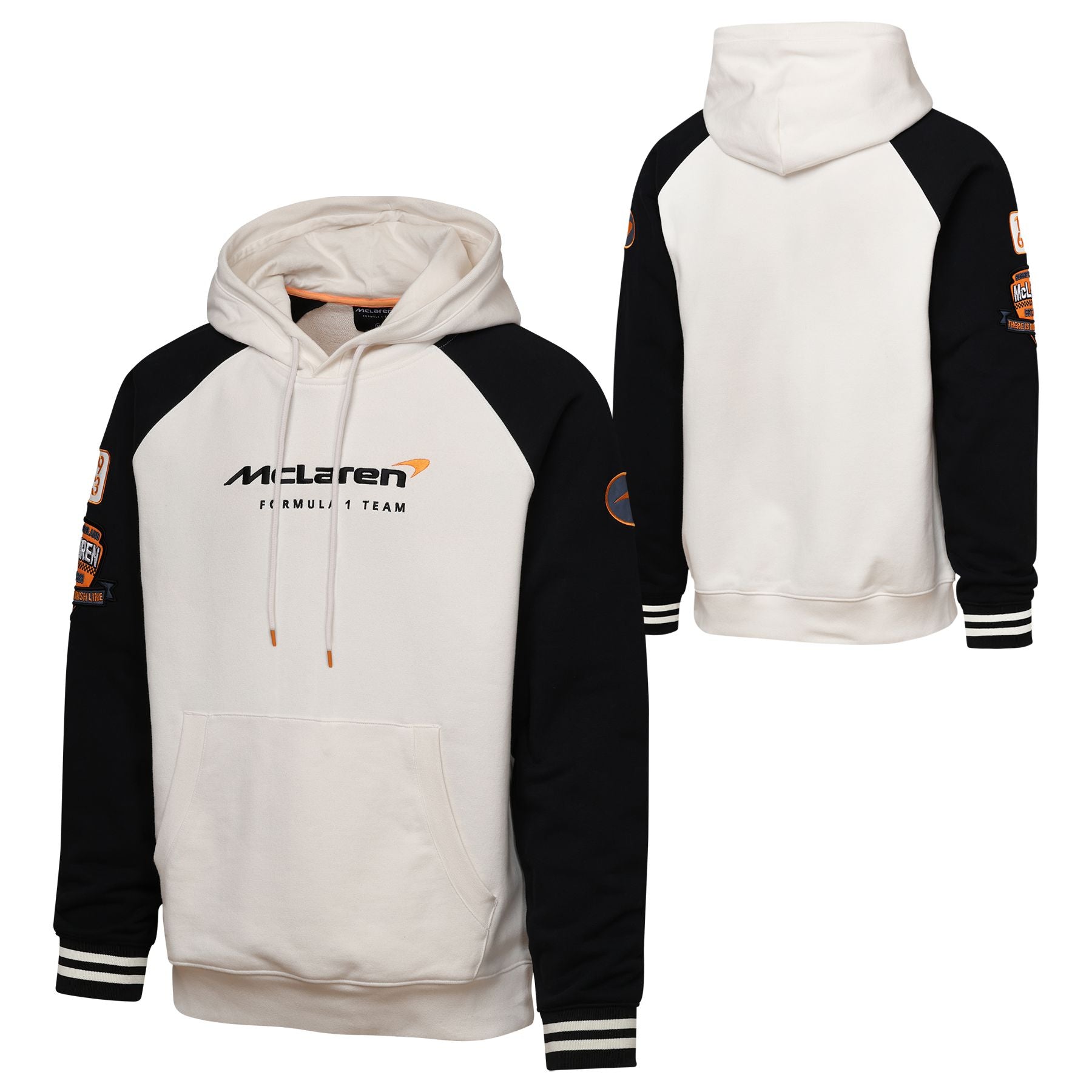In a White and Black colourway, this Hooded Sweatshirt is perfect for any casual outing or trackside visit. With a classic McLaren logo and EST date stitched onto the arm, the Hoodie really makes you feel like you are a part of the history of this famous team.