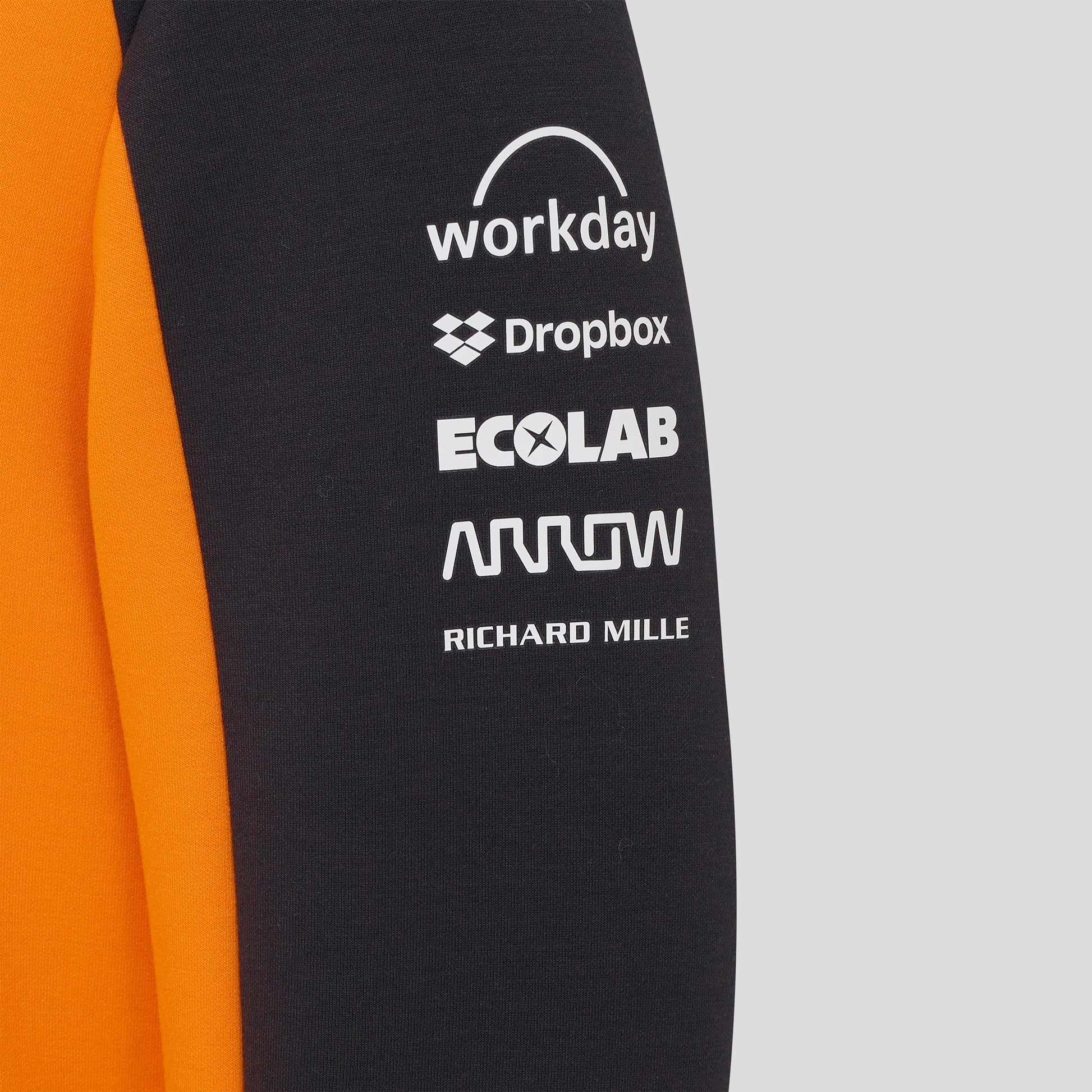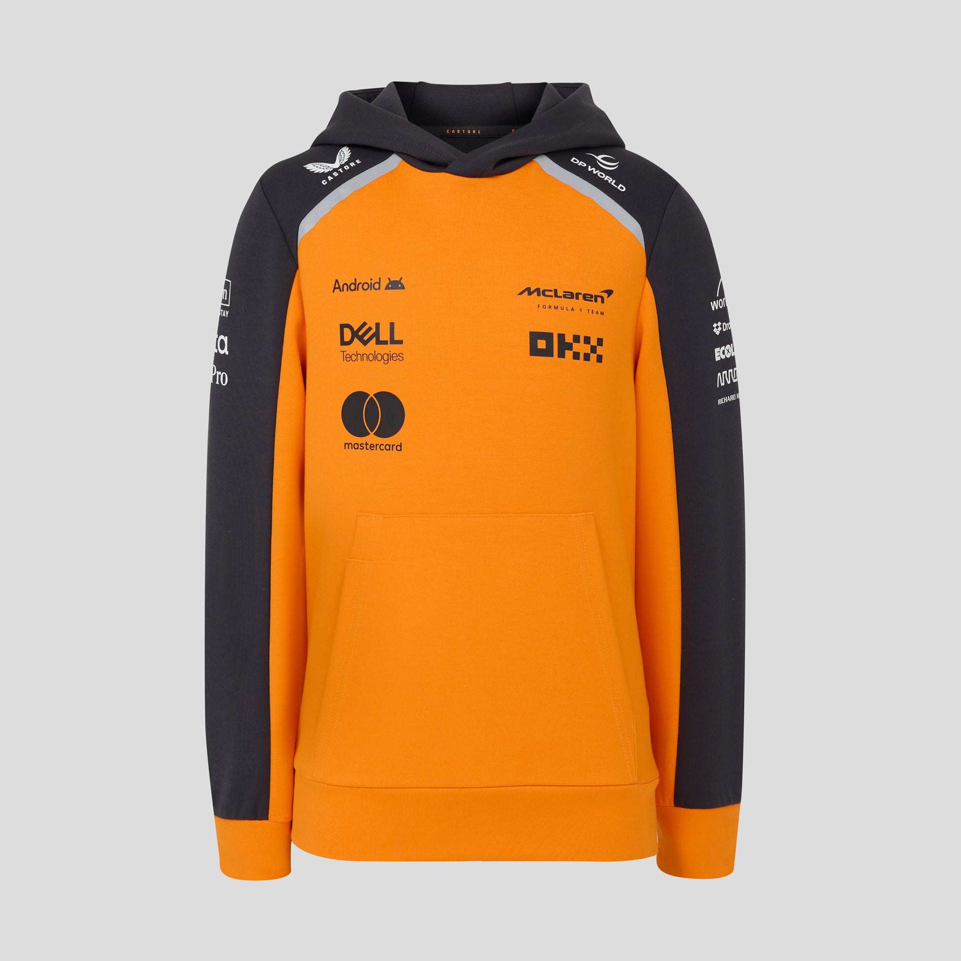 Show your support for McLaren Racing in style with this official Team Hooded Sweat. Designed for both comfort and performance, it features the McLaren Formula 1 Team logo and signature details. Worn by both Lando Norris and Oscar Piastri, the soft, premium fabric makes it perfect for race days, casual wear, or layering up in cooler weather. A must-have for any McLaren Formula One fan.