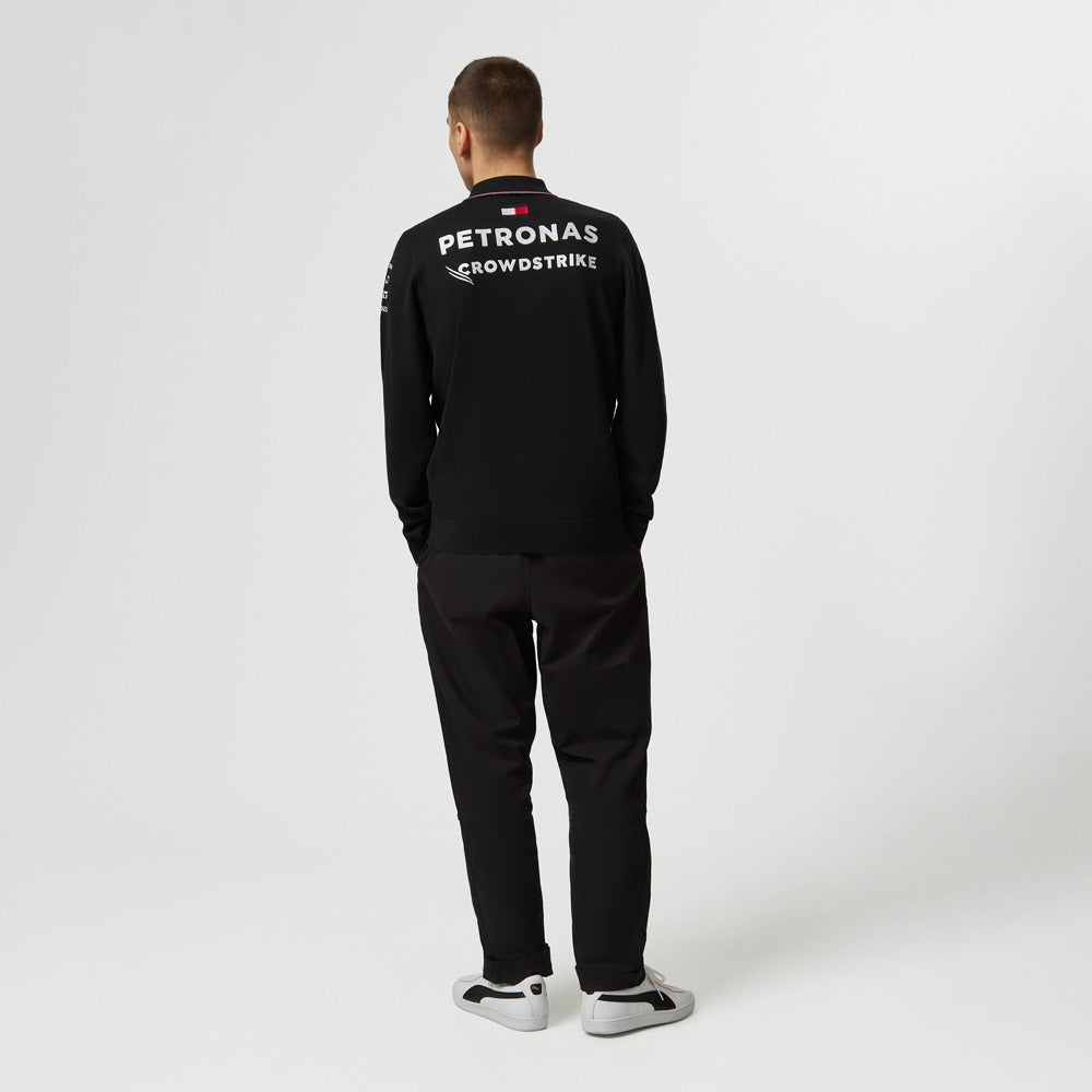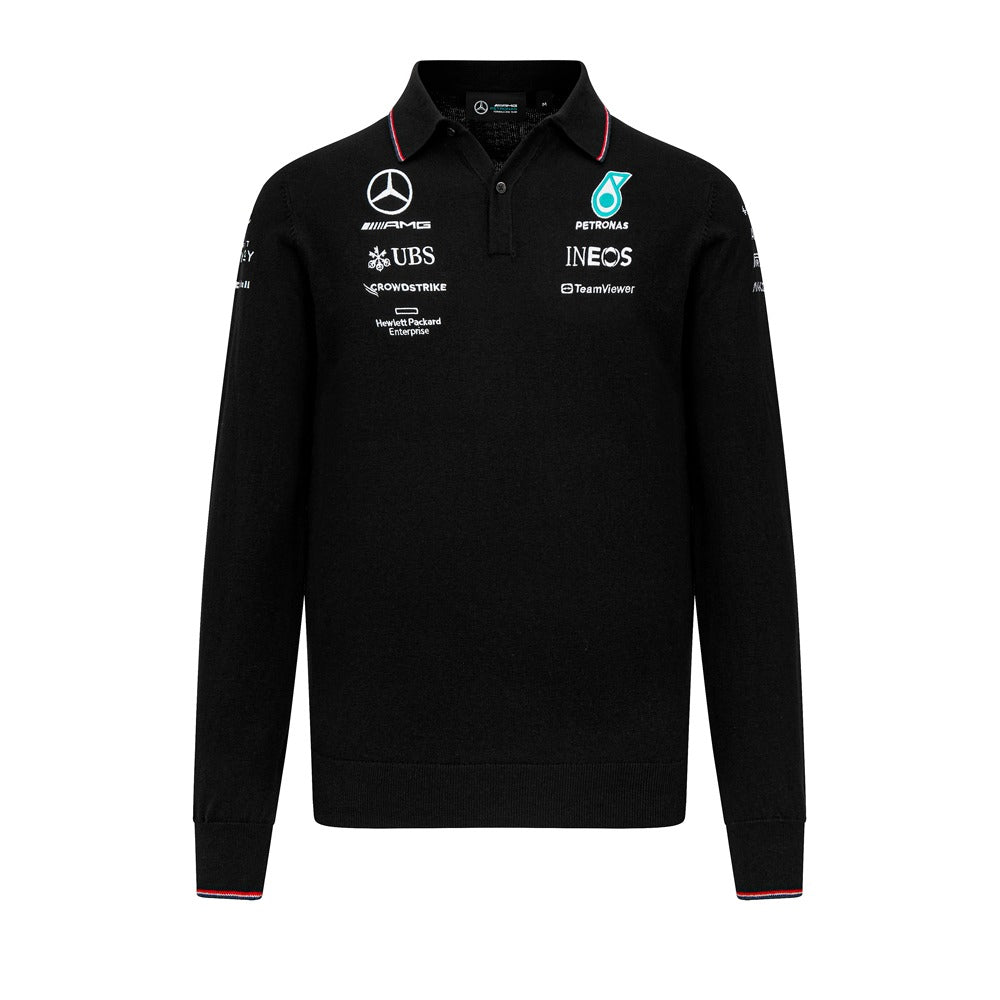 Mercedes AMG Petronas F1 2023 Team Knitted Long Sleeve Polo Mens - Black
