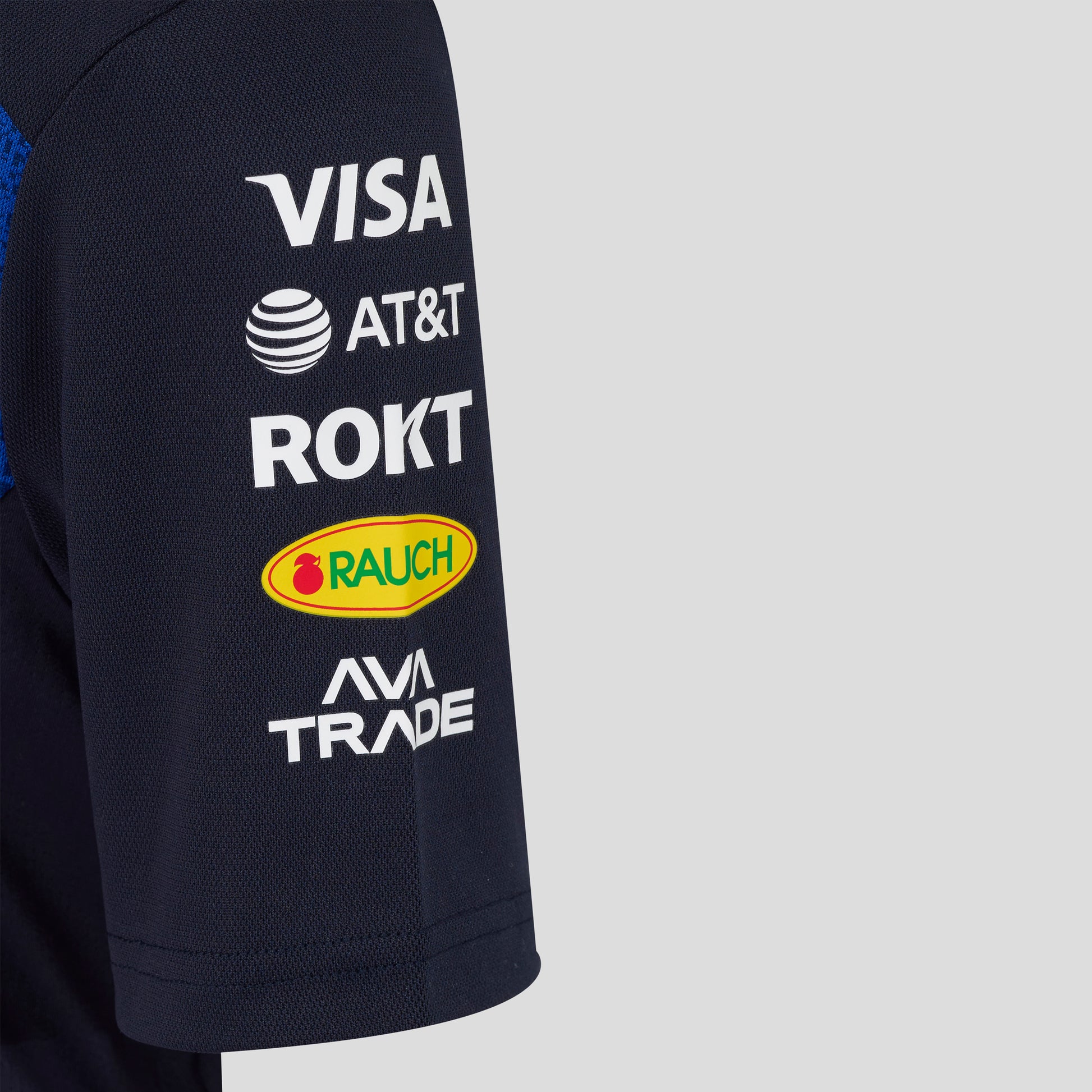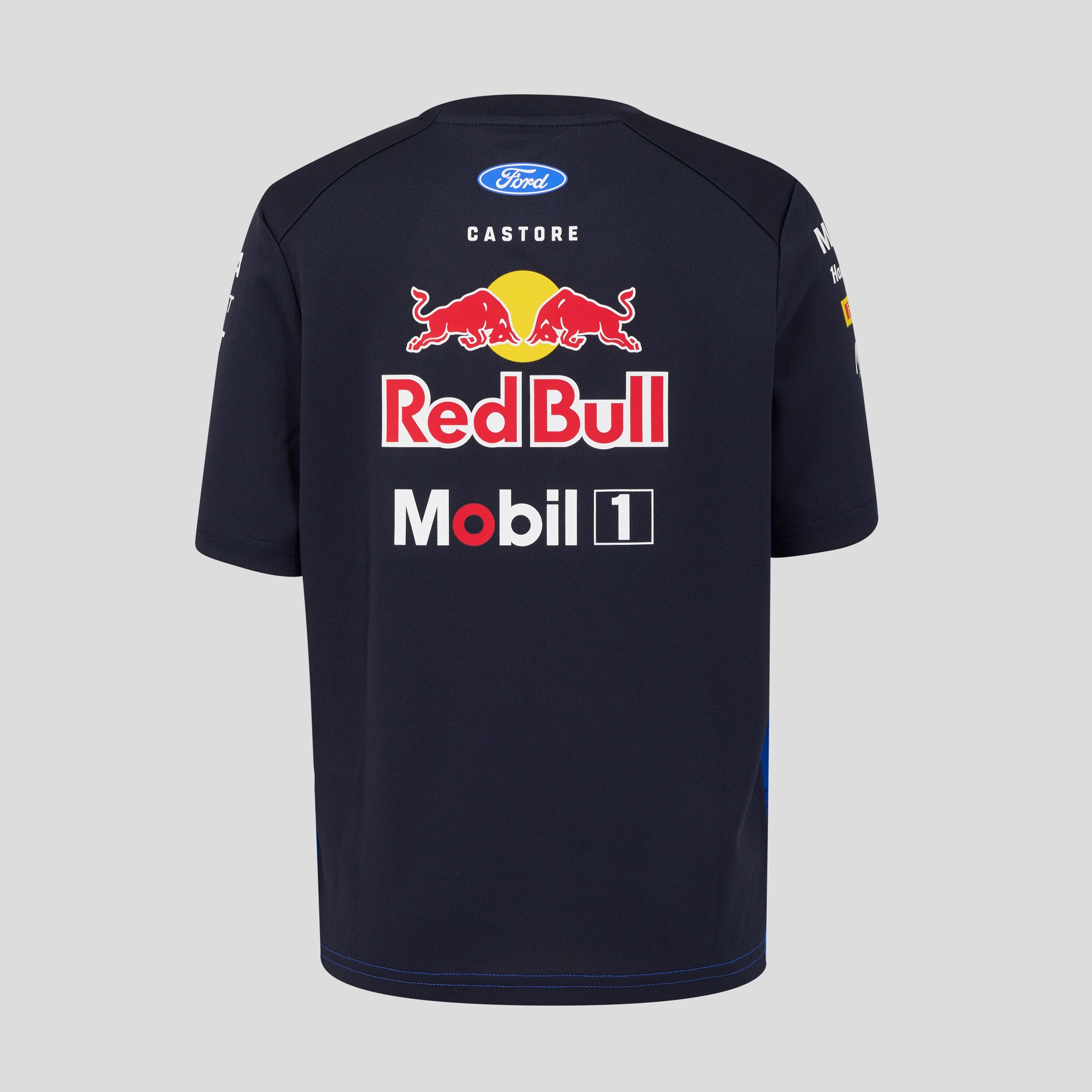 • Heat transfer brand, sponsor and Castore logos at chest, sleeves, shoulders, collar and upper back