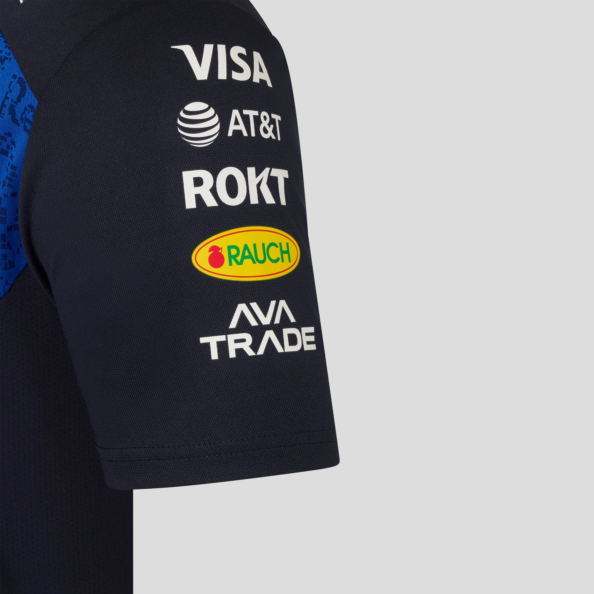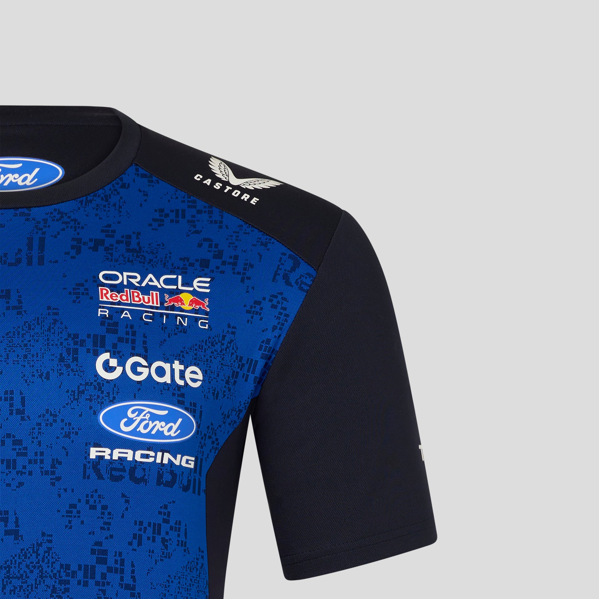 • Heat transfer brand, sponsor and Castore logos at chest, sleeves, shoulders, collar and upper back