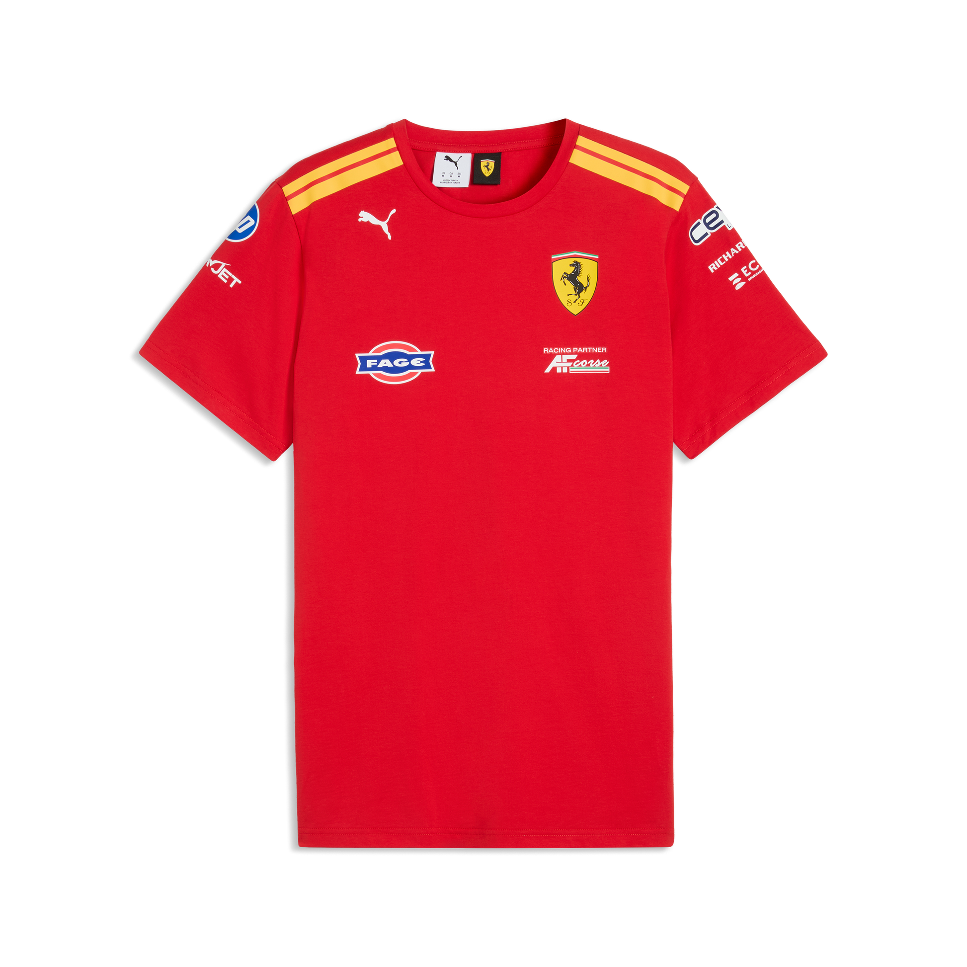 Show your support for the drivers with the Scuderia Ferrari F1 Team 2026 Hypercar Drivers Tee for men in red. This official team T-shirt features a classic crew neck, modern fit, and bold Scuderia Ferrari F1 driver branding, perfect for race days, casual wear, or motorsport-inspired everyday style.