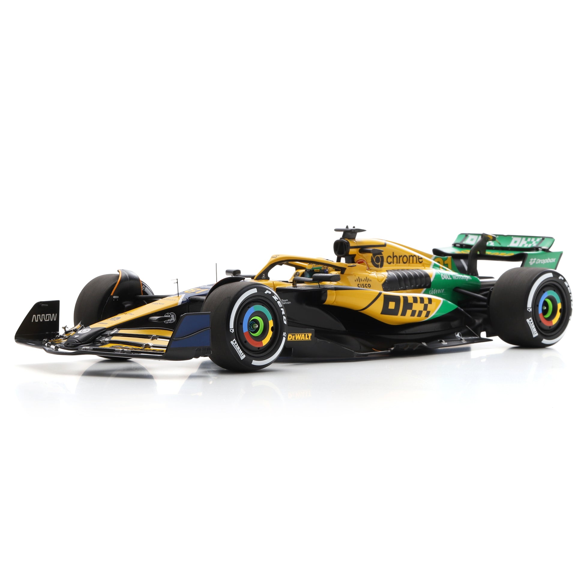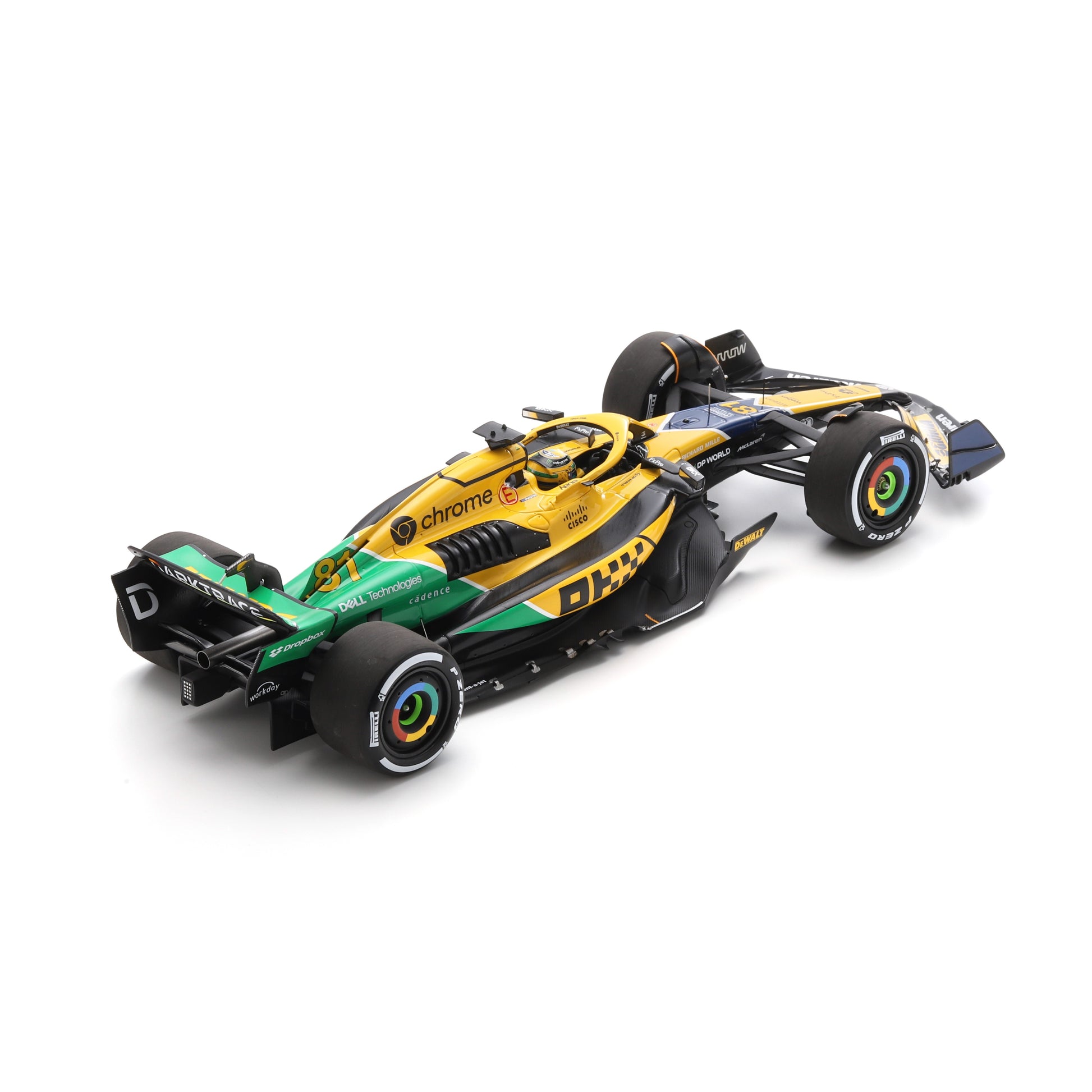 Spark McLaren Racing F1 Racing F1 MCL38 Oscar No.81 2024 Monaco GP Senna Livery Car Unisex - Yellow - 1:18 Scale