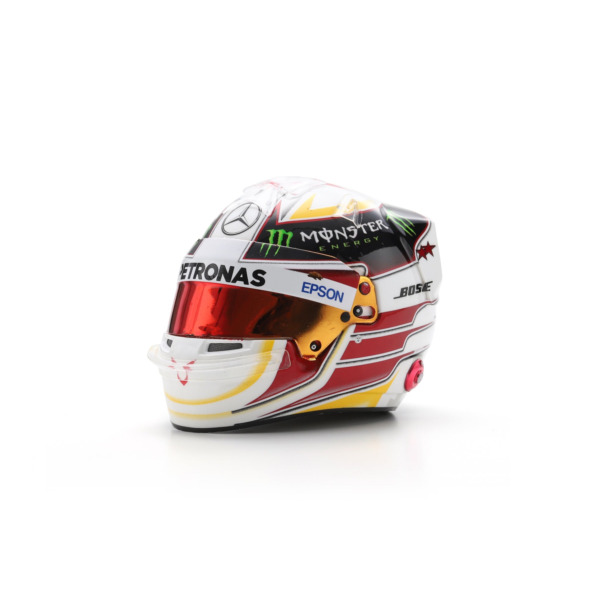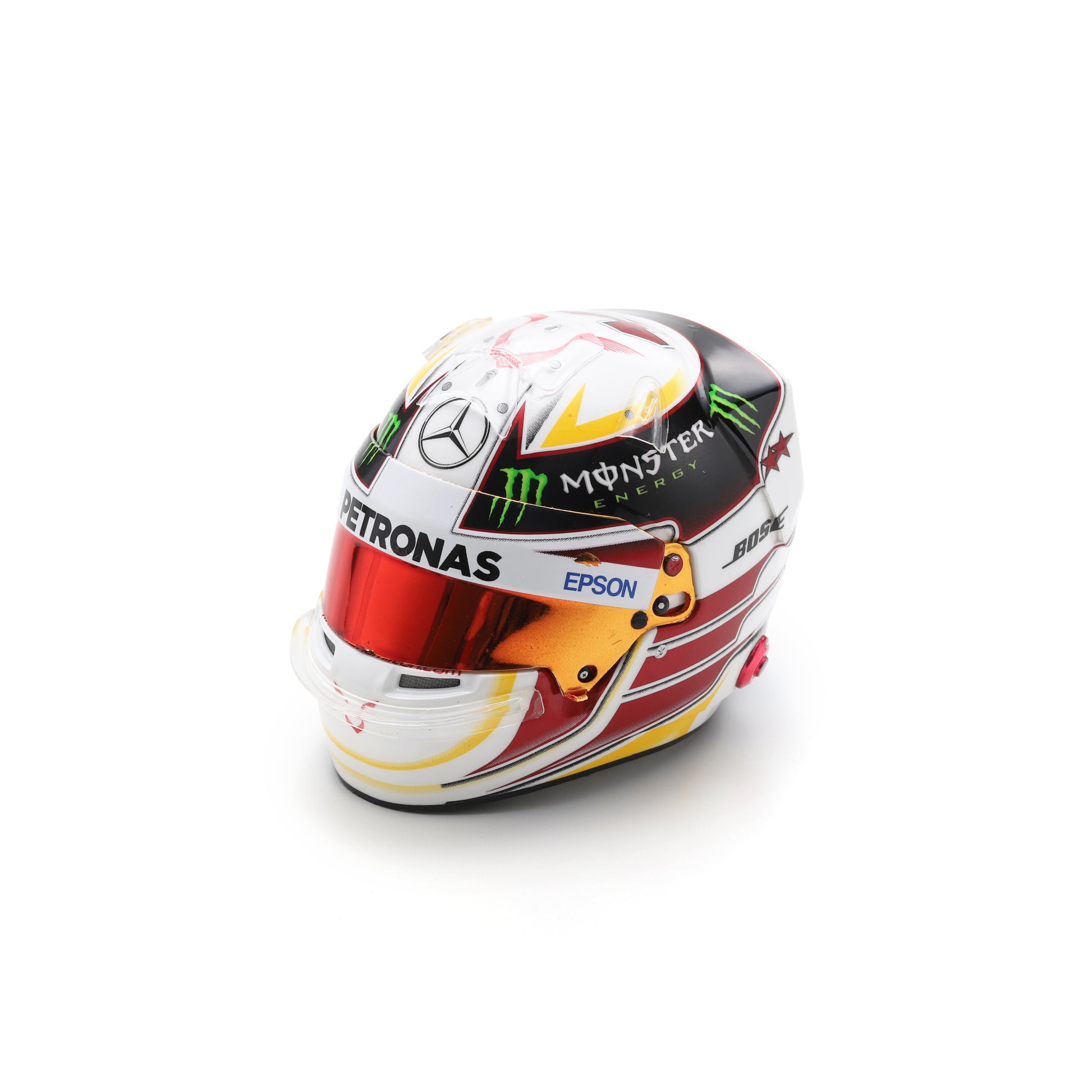 Featuring accurate sponsor logos, Lewis’ trademark yellow, red and white design, and his race number 44 on the top, this collector’s piece perfectly replicates the original full-size helmet used during the 2015 season finale. Whether you’re an F1 memorabilia collector, a Lewis Hamilton fan, or simply love motorsport history, this mini helmet is a must-have.