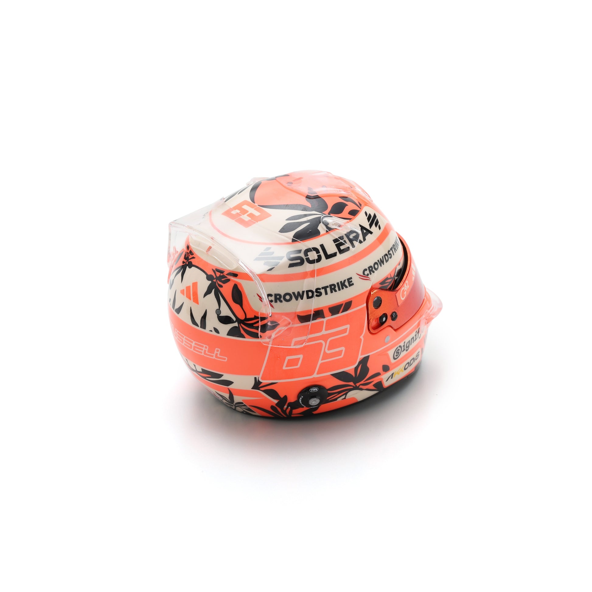 Celebrate the speed, style, and energy of the 2025 Miami GP with this eye-catching George Russell mini helmet — a standout addition to any Formula 1 collection.